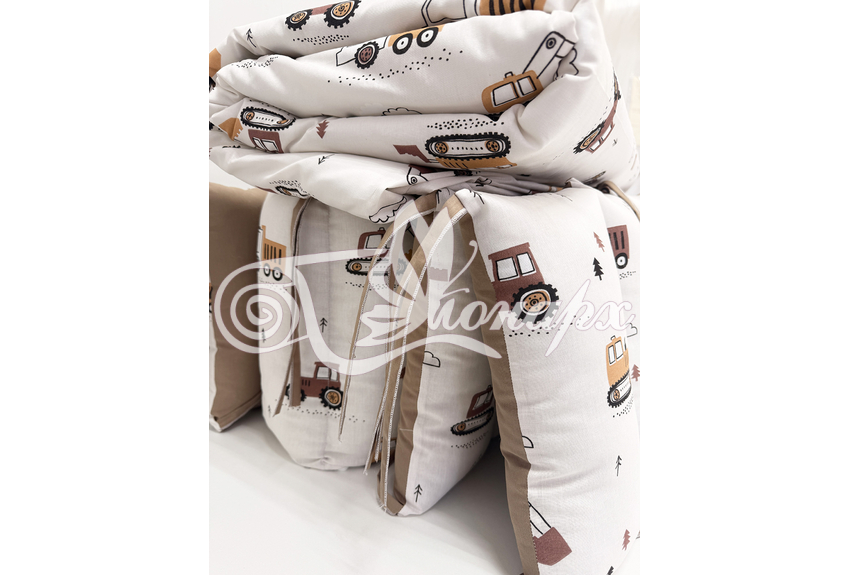 • Бортик-заборчик стеганый плотно забит синтепухом (на замочках): - 2 шт. 60х34 см / - 2 шт. 120х34 см.